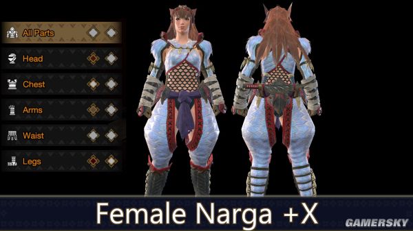 女性迅龙套装染色更加全面,将颜料染到盔甲更多部分。
