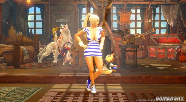 1、替换女性角色外观变为囚服配色的性感连体衣。 2、替换爆鳞龙套装,不包含头部。